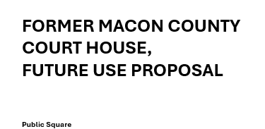 This project creates a proposal to the Macon County Commission on a suggested use for the former Macon County Courthouse. This proposal will include the following: creation of the Macon County History Center (the former courthouse), and centralize historical organizations and county history assets, and offloading other buildings and using that money to renovate, maintain and upkeep the former courthouse. This proposal will also suggest the creation of a new Macon Museum to also be housed in the building. You can learn me about specifics below.
