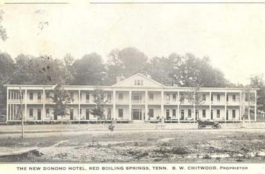 In 1916, the current structure we knew and loved, was built by Brady Chitwood and his wife Tennie to replace the lost building. The Donoho was designed as a classic early-20th-century mineral spring resort hotel: a two-story weatherboard frame structure on a brick foundation, with full-length verandas on both stories so guests could relax and enjoy the Tennessee air. Inside, the layout included a lobby, lounge, dining hall and a rear kitchen wing added in the 1930's.